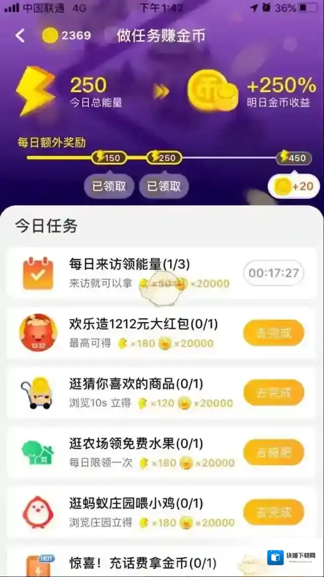 3、点击右下角“领欢乐币”,可进入基本任务界面,全部完成后可获得大量欢乐币。