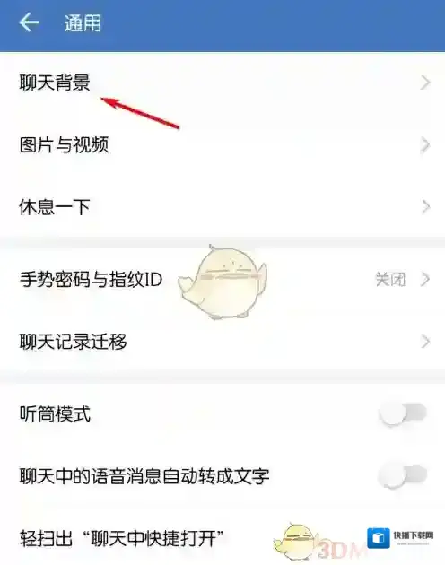 4、在通用界面,点击聊天背景;