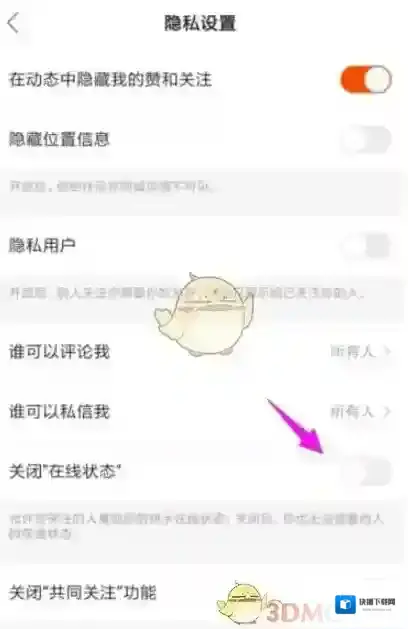 4、在隐私设置页面,将“关闭在线状态”开启即可隐身