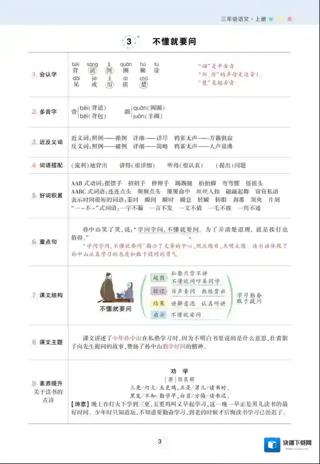 状元语文笔记(背记清单)3年级上册 pdf格式 百度云网盘