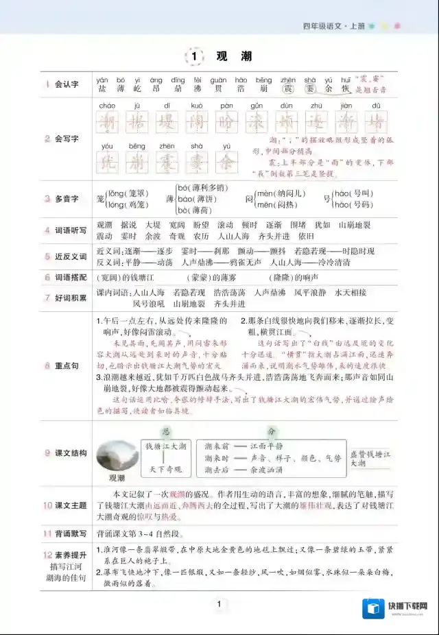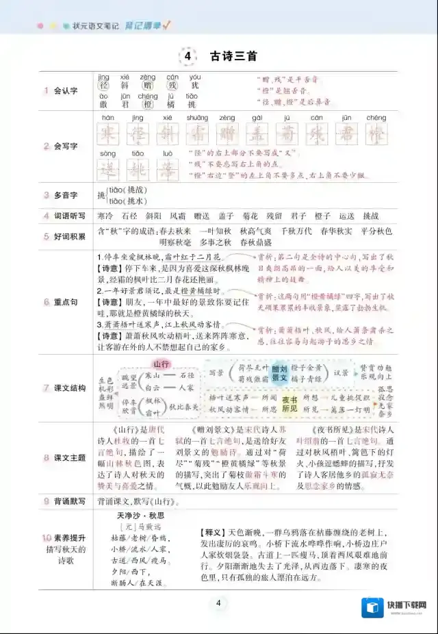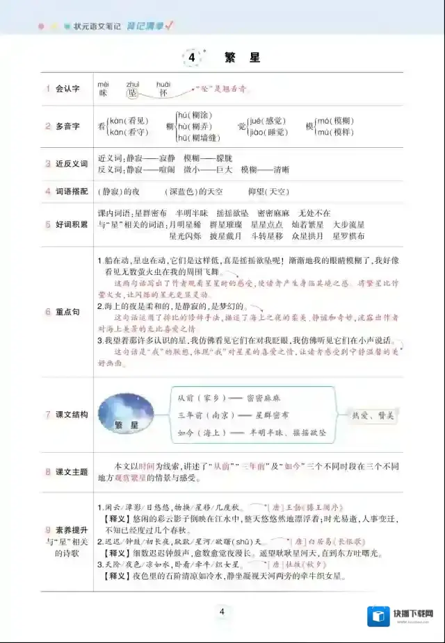 状元语文笔记(背记清单)小学4年级上册 pdf 百度云网盘