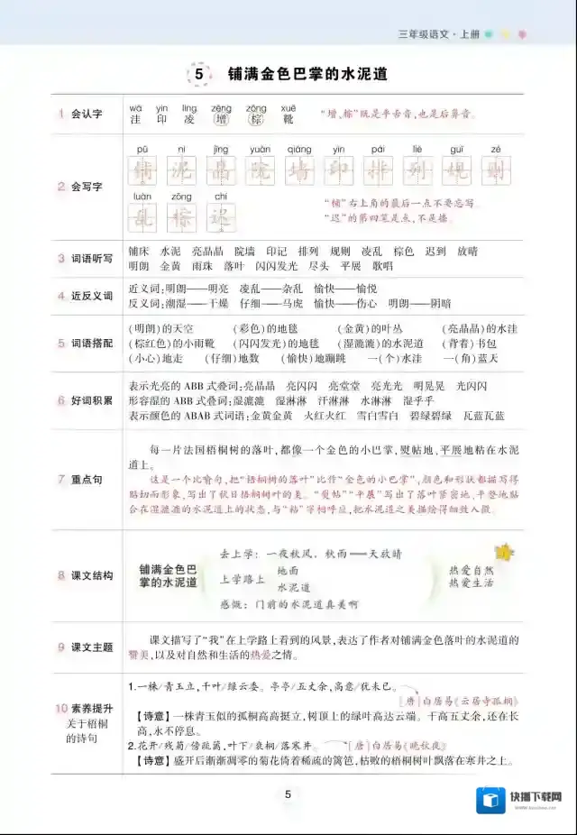 状元语文笔记(背记清单)小学5年级上册 pdf 百度云网盘