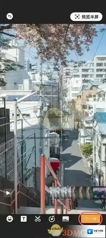 6、导入视频之后,自动识别视频的比例后,如果是9:16,将自动显示全屏,点击下一步;
