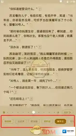 5、现在就来到了小说的阅读界面,而系统已经开始为了朗读小说中的书了,然后我们在点击屏幕中间。