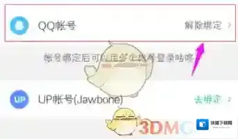 3、在出现的账号绑定界面中,找到“QQ账号”,然后点击右侧的“去绑定”选项,这个时候会转换到另外一个界面。