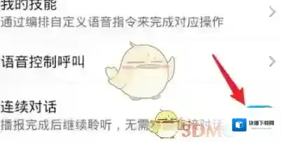4、在语音助手设置界面,点击连续对话后方的开关。