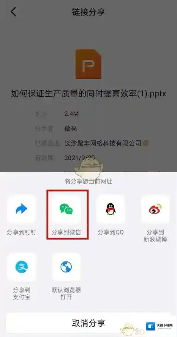 1、打开钉钉文件,点击右上三点图标后,点击获取分享。