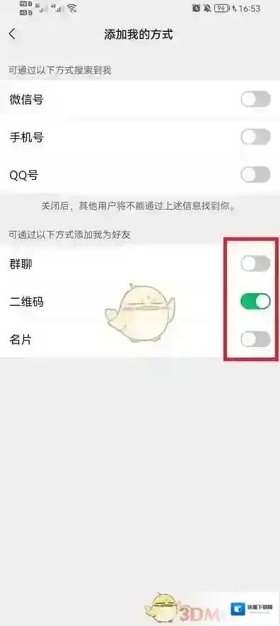 3、在隐私功能中,有一个添加我的方式进入其中;