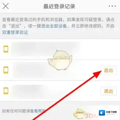 4、进入最近登录记录的页面后,点击要下线设备后面的退出