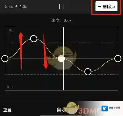 5、可以删除、添加变速点,自由设置曲线上升、下降,完成后点击√即可。