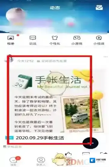 6、然后在自己的动态里面就可以看到自己的手账生活。