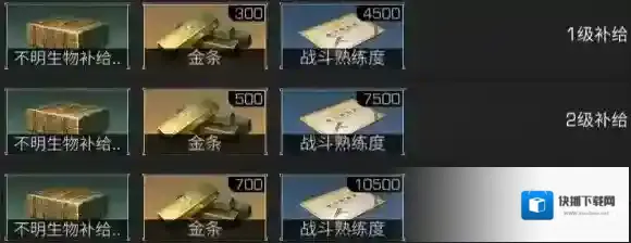 击败奖励包括:不明生物补给包、金条与战斗熟练度