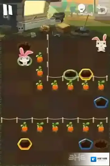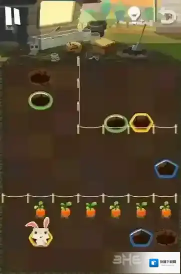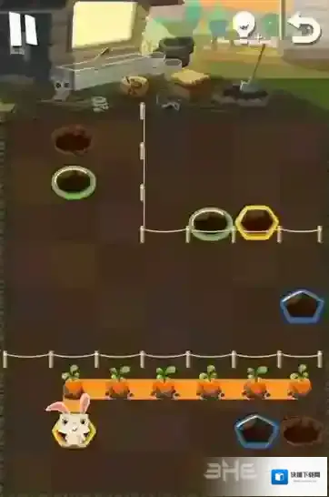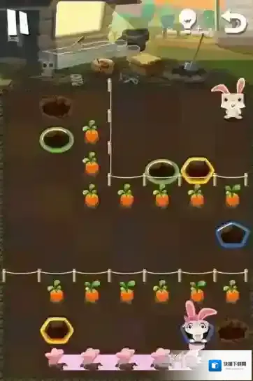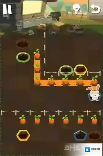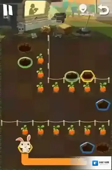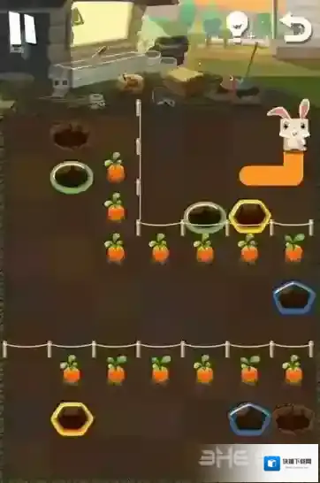 路线6:小粉兔再吃掉花朵后,将会从黄色的洞口中出来,玩家可以再次让小粉兔进入绿色的洞中,最后就可以顺利回去了。