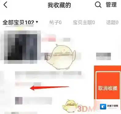 5、或者我们直接向左滑动该宝贝,点击取消收藏也可以。