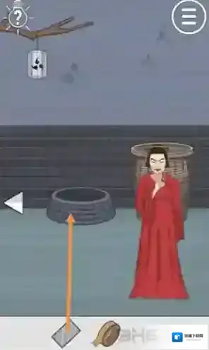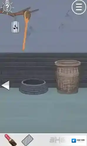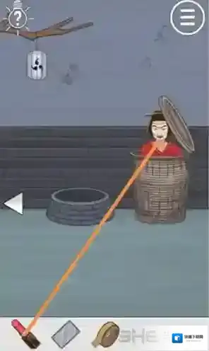 随后选择镜子,将其移动到下图箭头所指的井上,之后返回左边。