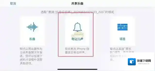 6、选择铃声并长按,在弹出的选项中,点击共享。