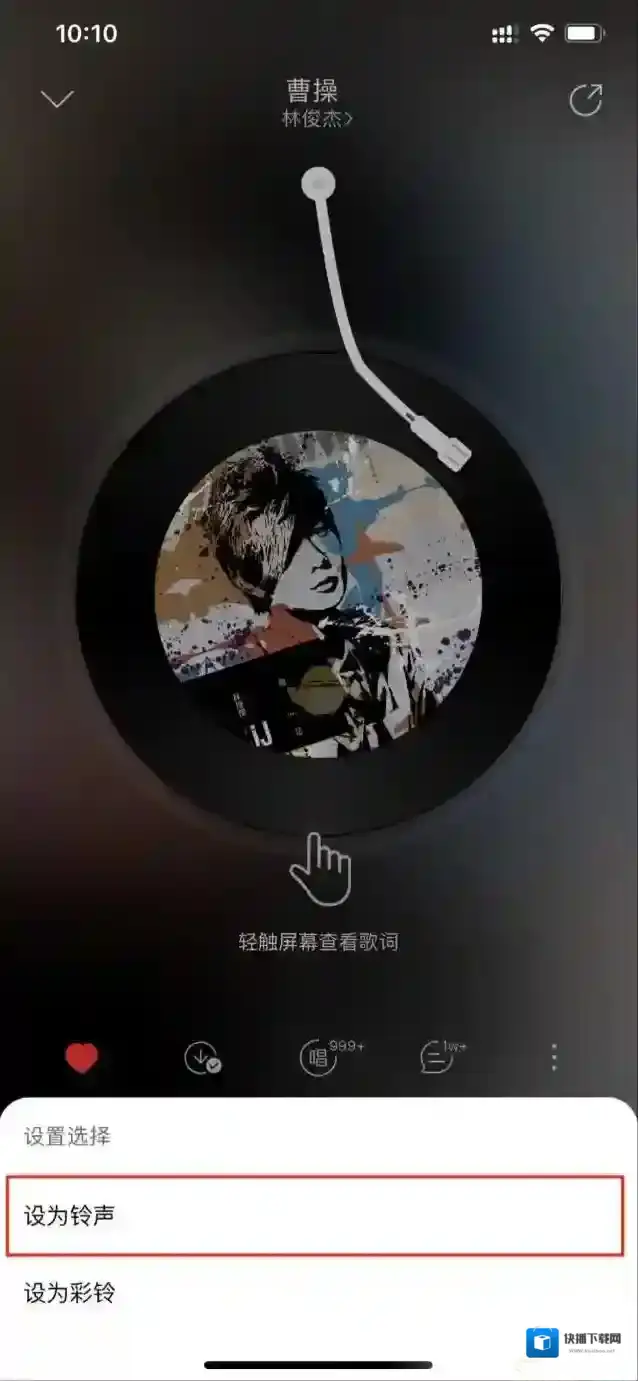 2、在播放界面中,点击三点图标,在展开的选项中,点击设置铃声或彩铃。
