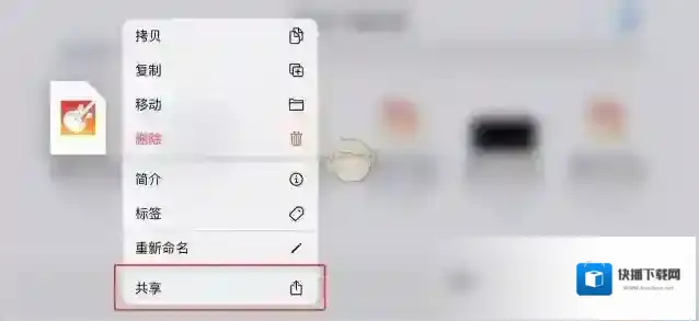 5、在弹出的选项中,点击拷贝到库乐队。