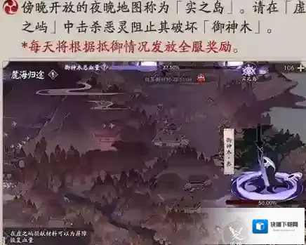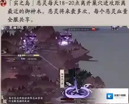 (1)每天18:00,黑夜会降临,恶灵将发起进攻,实之岛也随之开启,阴阳师大人们需要在实之岛中齐心协力消灭恶灵,防止御神木被破坏。