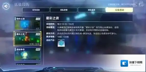 活动描述:元素精灵每晚会被特殊天气星彩之夜吸引到公会基地,使用物质枪收集元素,并获得大量经验。