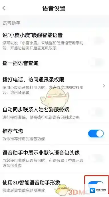 4、找到使用3d智能语音助手形象,关闭右侧开关即可。