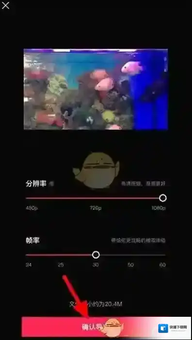 4、视频剪辑玩之后大家讲视频的分辨率和帧率调整到自己满意的数值就可以确认导出了。