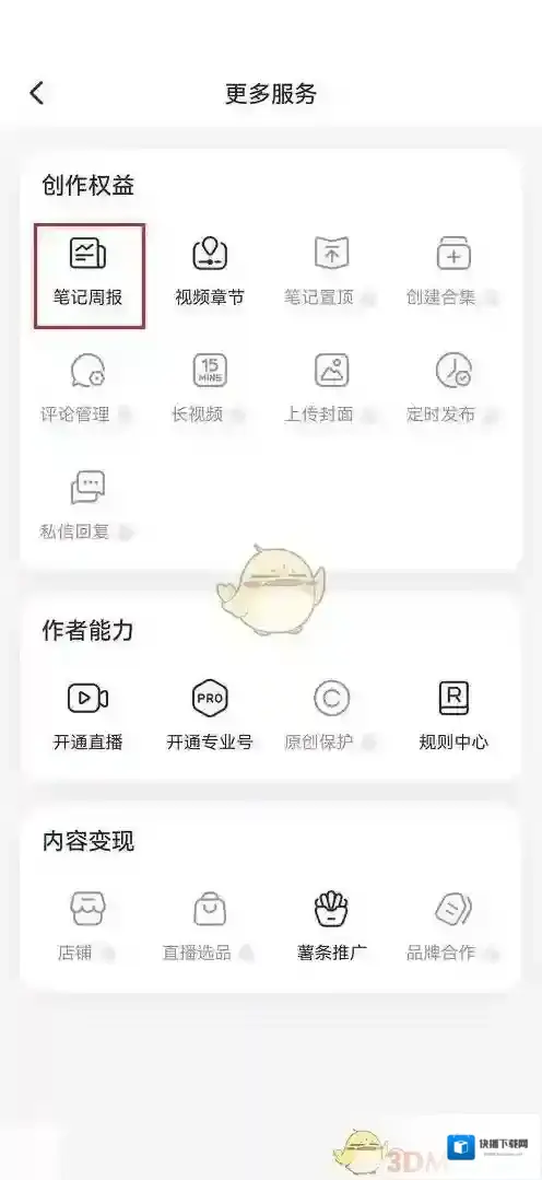 4、进去之后,点击笔记周报,可以查看小红书笔记周报即可。