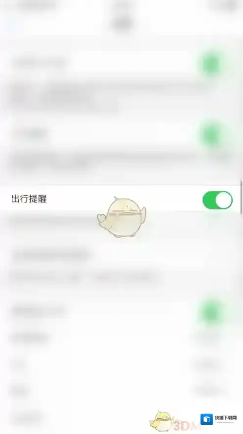3、接着在设置界面点击“出行提醒”后面的圆点;