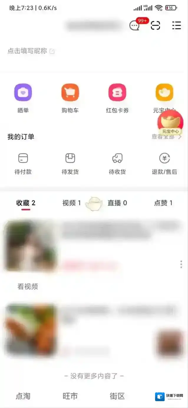 1、打开点淘app,点击右下角“我的”,在下方栏目中就可以看到收藏了。