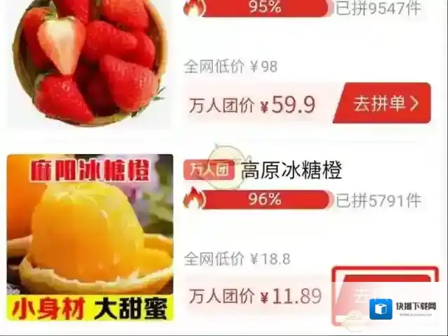 3、进入万人团界面后,选择需要拼单的商品,点击去拼单。