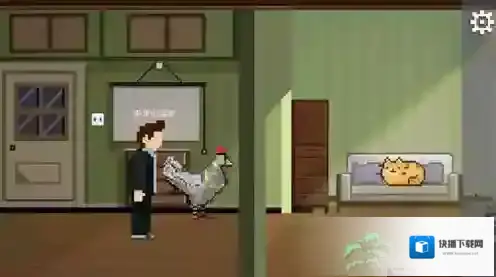 在门厅可以看到一只铁公鸡。一直点击公鸡,便可以将公鸡赶入厨房。可以欣赏到铁公鸡走路时的英姿飒爽。
