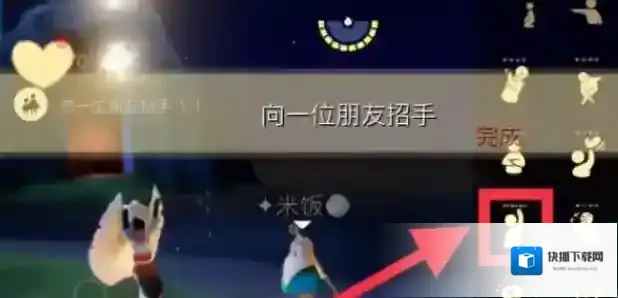 点击屏幕上方中间动 找到招手动作面对好友点击并完成招手即可