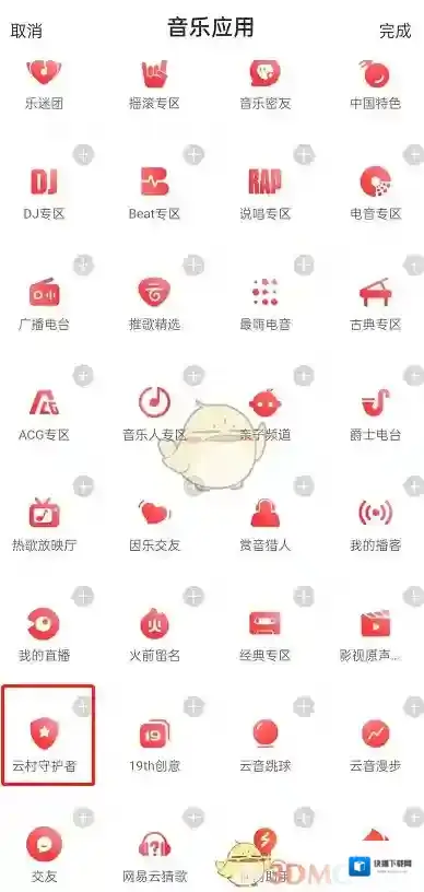 1、打开网易云音乐,点击我的,找到音乐应用,点击加号。
