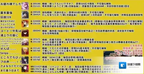 七本枪是在活动第七天开放,可以将其当做是小高难,具体的七本枪配置如图: