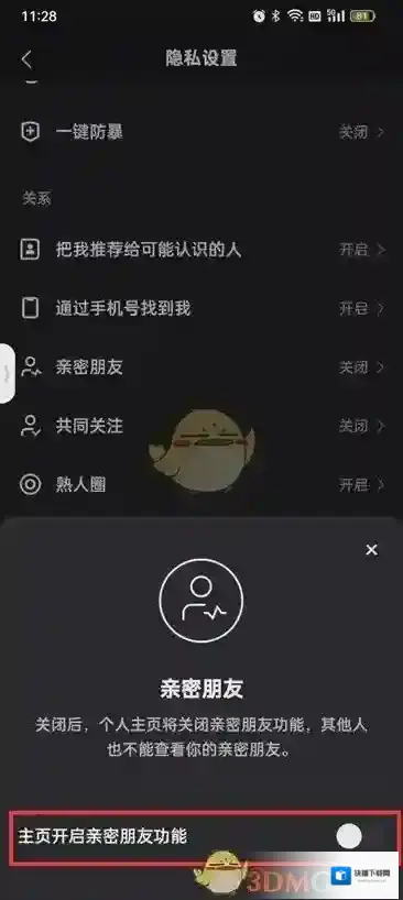 5、最后点击过后在弹出来的对话框中开启主页开启亲密朋友功能即可。