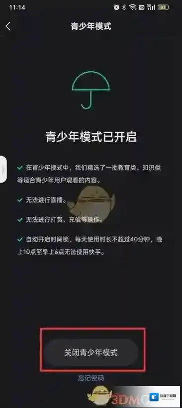 《快手》青少年模式退出方法