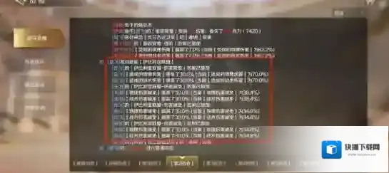 关羽在铁浮屠阵的概率加成效果下,三个技能的概率均叠加到了很高的数值。