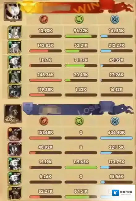 从这场对战的数据面板来看,与我们所预料的也十分接近。左侧的主力点在于雪米拉的持续输出,右侧的高鲁斯虽然通过爆发也打出了不菲的输出,但在卢修斯和尼莫拉的双重续航下也没能使得左侧阵容减员。