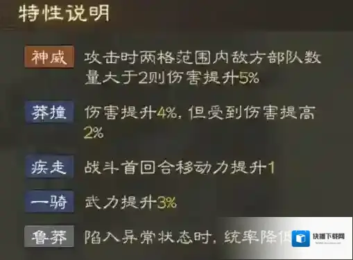 神威:攻击时两格范围内敌方部队数量大于2则伤害提升5%