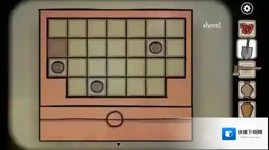 收集盒子里的果实,然后用铁锹弄开右边的贝壳,收集金豆豆