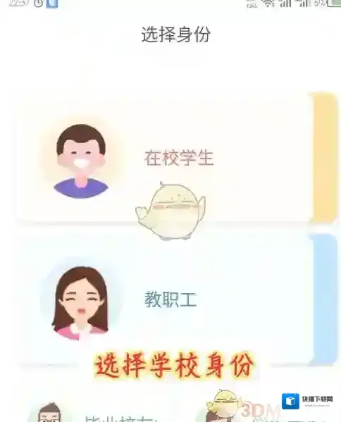 7、最后在打开的选择身份页面,选择学校的身份即可。