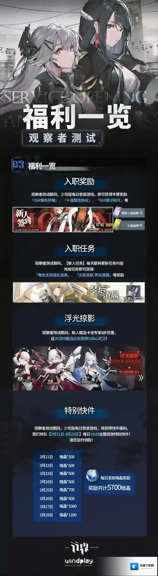 “观察者测试”预下载通道已经正式开启。各位少司寇大人可以通过测试服页面进行下载!实习人数满10000人后,我们将关闭七院入口,还请注意!正式调查服务器将于3月21日11点开服。欢迎各位少司寇大人前往七院进行实习考察工作。无妄为您准备了一则更全面的工作内容指南,请您仔细阅读!