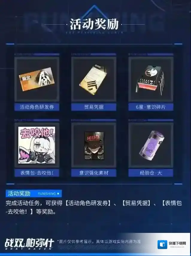 完成活动任务,可获得活动角色研发券、贸易凭据、表情包-去咬他!、基础培养材料等奖励。