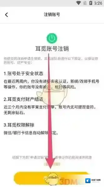《耳觅》注销账号方法 2025-08-09 12:23:05 编辑: 你怎么哭了 分类: 应用教程 • 阅读: 491 1、进入耳觅后点击右上角的设置按钮 2、在设置里点击关于我们 5、最后点击“申请注销”即可。 本文内容来源于互联网,如有侵权请联系删除。 耳觅应用相关内容 全部 耳觅 耳觅点击 耳觅设置 耳觅注销账号 耳觅关于我们 《耳觅》唱整首歌方法 1、在软件主页点击加号。 2、接着点击唱歌。 3、输入歌曲的名字搜索。 4、点击这首歌。 5、点击如图红点开始唱歌。 本文内容来源于互联网,如有侵权请联系删除。 2025-08-09 《耳觅》添加好友方法 1、首先我们需要知道好友的耳觅id,然后打开耳觅 2、点击搜索框,输入好友id进行搜索 3、搜索后进入好友主页,点击关注即可。 本文内容来源于互联网,如有侵权请联系删除。 2025-07-15 发表回复 请登录后评论... 登录后才能评论 评论列表 ( 0条)