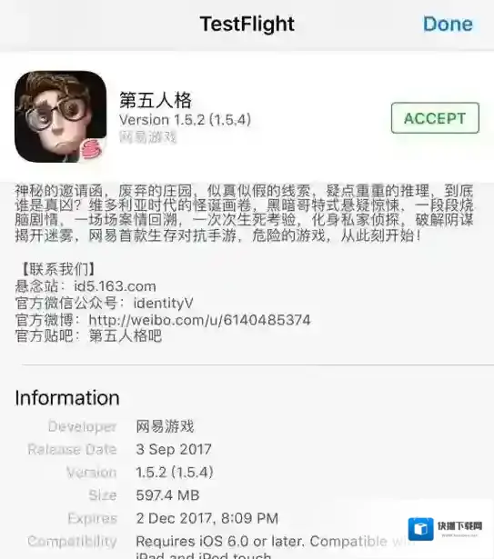4.打开“TestFlight ”App,输入激活码,下载《第五人格》游戏
