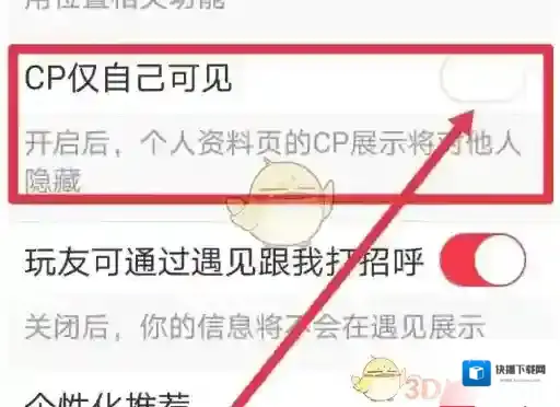 4、来到隐私设置,然后点开CP仅自己可见的按钮。