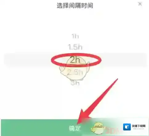 4、接下来在选择间隔时间列表中选择2h并点击确定即可。