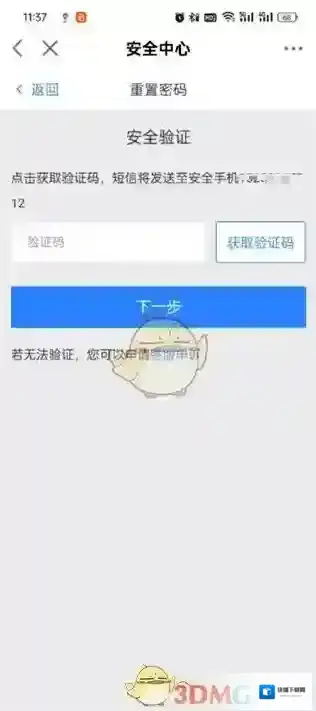 5、在重置密码的页面中我们输入上验证码之后点击下一步;