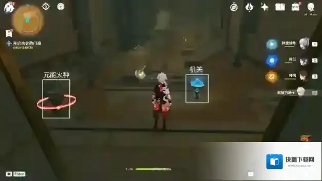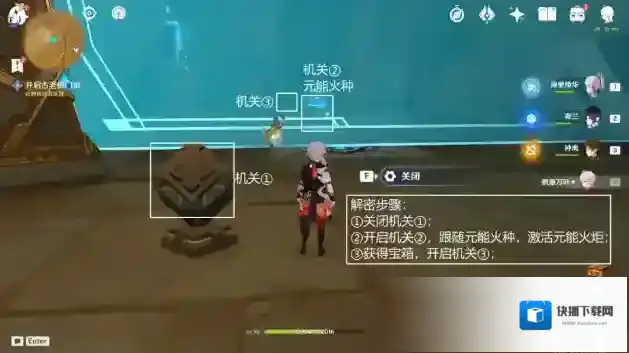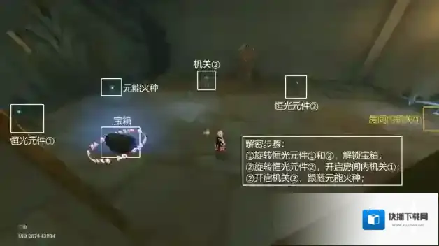 继续跟随元能火种,按图中解密步骤,前往房间①