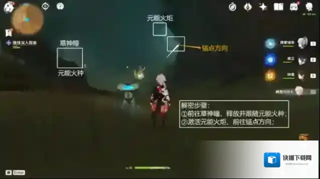 前往地下房间②,跟随元能火种,按图中解密步骤
